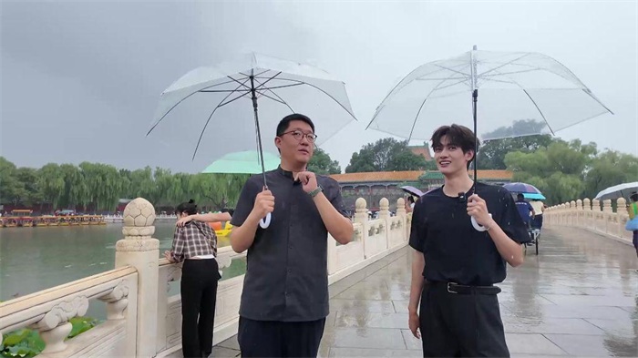 直播尾声,甘望星与徐老师来到 “琼岛春阴碑” 前,这是乾隆御笔亲题的“燕京八景”之一。碑文字义兼具“表层”与“深层”:表层描绘琼华岛春天葱郁美景,深层则是帝王“提醒春耕农时”的治国理念——既显文人雅致,又含民生关怀。甘望星总结此行感受:“作为南方人,第一次知道北京有这样一座‘挖出来的岛’,每一块砖、每一座殿都有历史。” 徐老师则强调:“北海琼华岛不仅是皇家园林,更是融合了藏式佛塔与汉式园林,见证多民族交融的象征。”